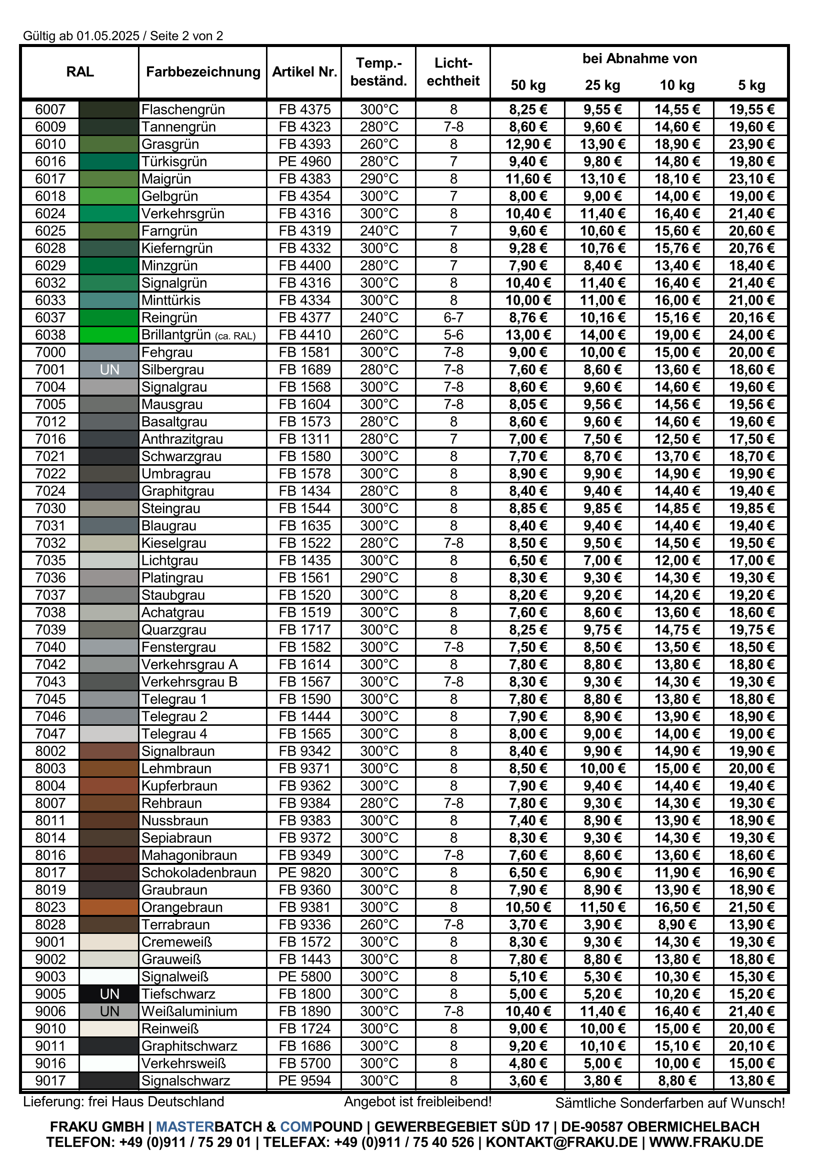 Hier können Sie unsere Angebote der FRAKU Standardfarben als PDF herunterladen oder drucken: